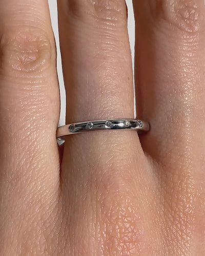 This elegant ring features five stunning salt and pepper diamonds finely set in a 9ct white gold band. Perfect to be worn as a wedding band, this ring is carefully handcrafted by our London jewellers.