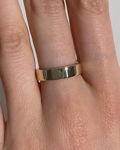 A contemporary flat band ring, handcrafted with recycled 9ct solid gold in our London workshop. Perfect as a versatile addition to your everyday ring stack or as the ultimate wedding band for the modern bride.