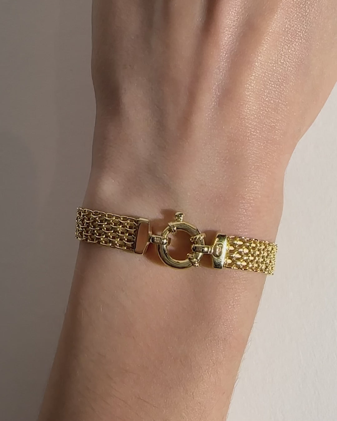 Reminiscent of ancient armour, this supple and luxurious mesh chain bracelet is crafted in smooth solid gold. Pair with our Mesh Chain Necklace to complete the set or explore our Layering Chain Collection to build your one-of-a-kind stack.