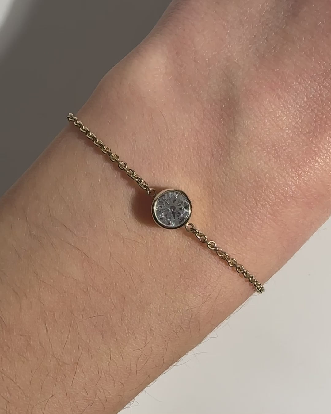 Set on a delicate chain bracelet, a 0.8ct lab grown diamond shines in a contemporary bezel setting. Handcrafted in our London workshop with recycled solid gold, make a statement with April's birthstone. Discover our diamond jewellery collection.