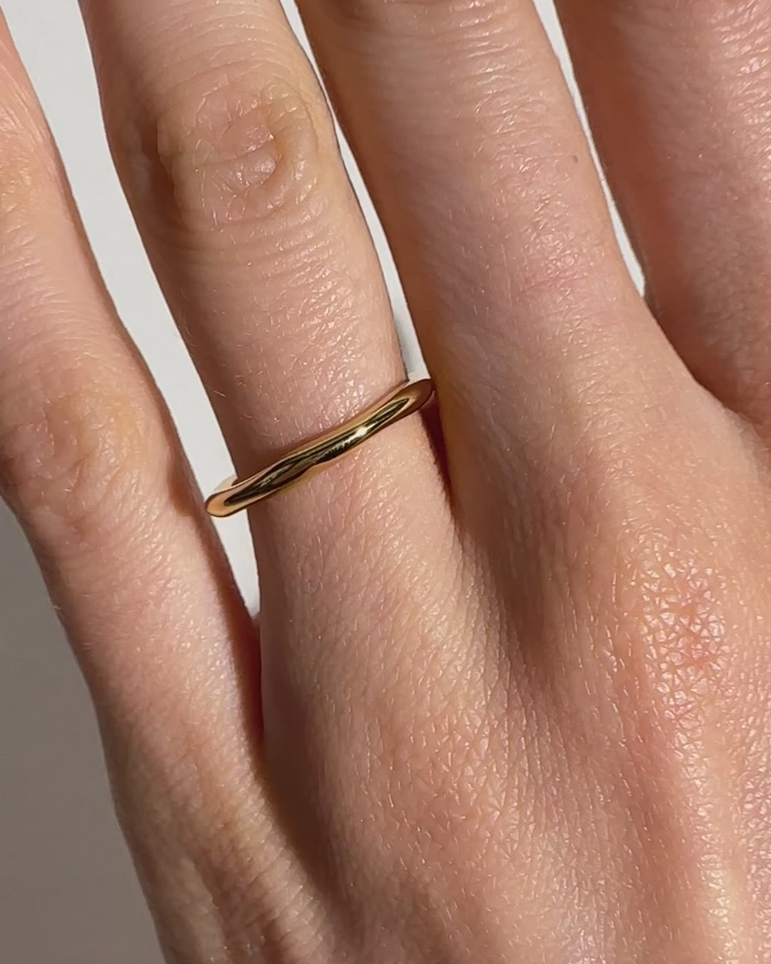 A delicate ring with a contemporary twist, this is the ultimate stacking ring. Made with a unique fluid shape, this ring pairs perfectly with our Organic Heavy Ring. Mix silver and gold for a modern look. Explore the Signature Collection.