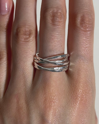 sterling silver interlocking rings with hammered texture handcrafted in London by Maya Magal London
