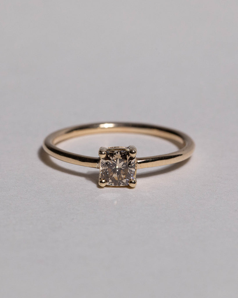 A refined take on the classic solitaire engagement ring. This one-of-a-kind piece features a cushion cut 0.53ct light brown diamond set on a delicate solid 9ct yellow gold band. Warm, understated, and timeless, Jude is handcrafted in our London workshop.