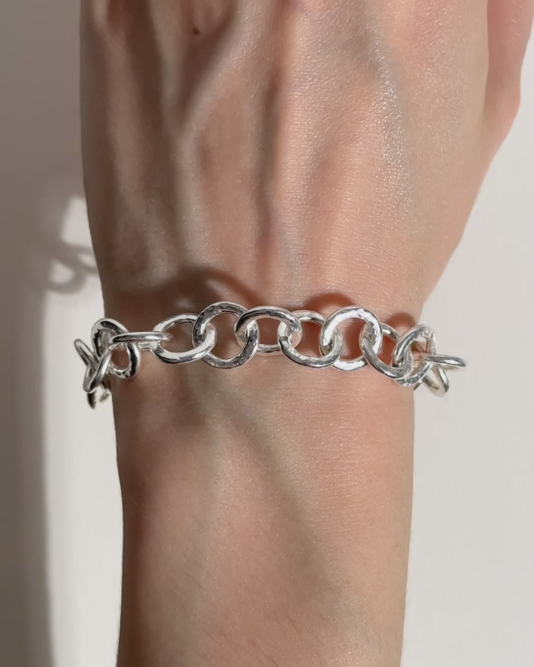 Bold sterling silver links are handcrafted in cool sterling silver. This sculptural chain bracelet is both a statement addition to your bracelet stack and a timeless addition to your jewellery collection. Explore the Sculpt Collection.