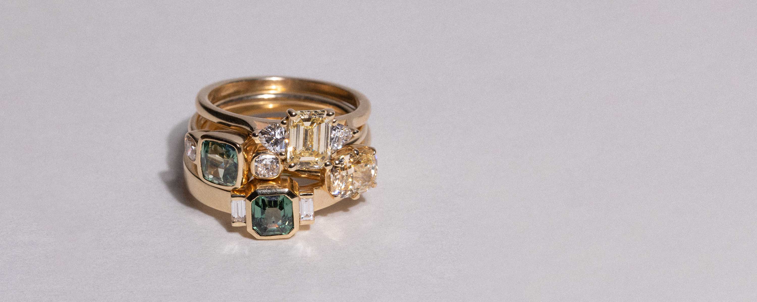 Our one of a kind rings are handcrafted by skilled jewellers in our Islington workshop, using recycled materials and responsibly sourced, conflict-free gemstones. Each one is unique and ready to ship, with no lead time.