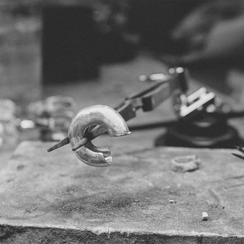 We craft in limited, accurate quantities, avoiding over-production and unnecessary stock. All precious metal off-cuts are melted down and reused, creating a truly circular system where no material is lost.