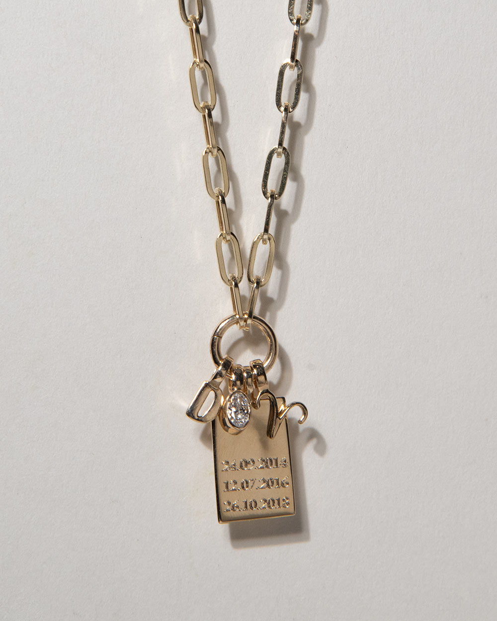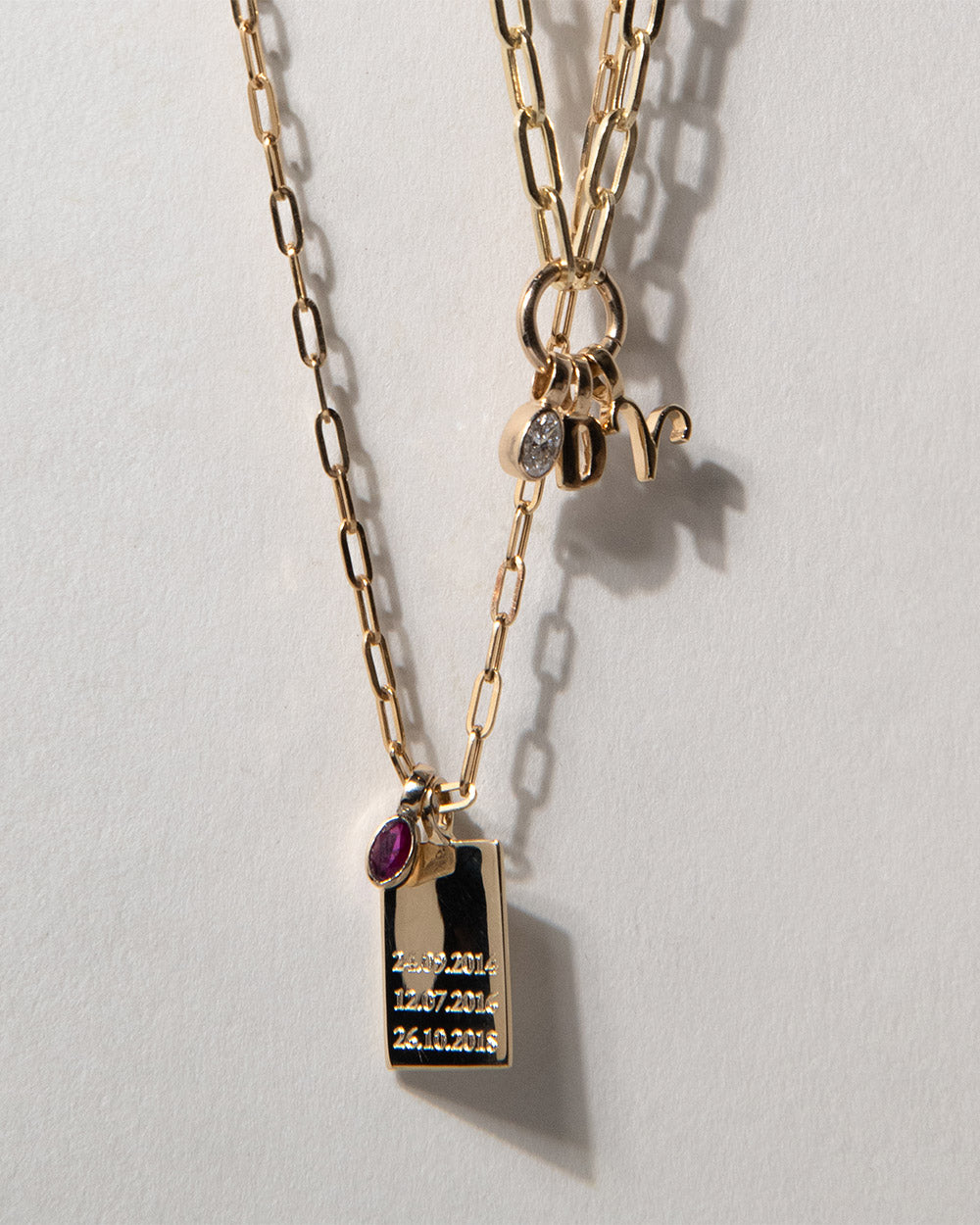 Start with your base chain (fine for a minimal look, paper chain for more structure), then choose 1–3 charms as your foundation - such as a birthstone, initial, or zodiac. Add extra charms over time to mark moments and create a layered, personal mix.