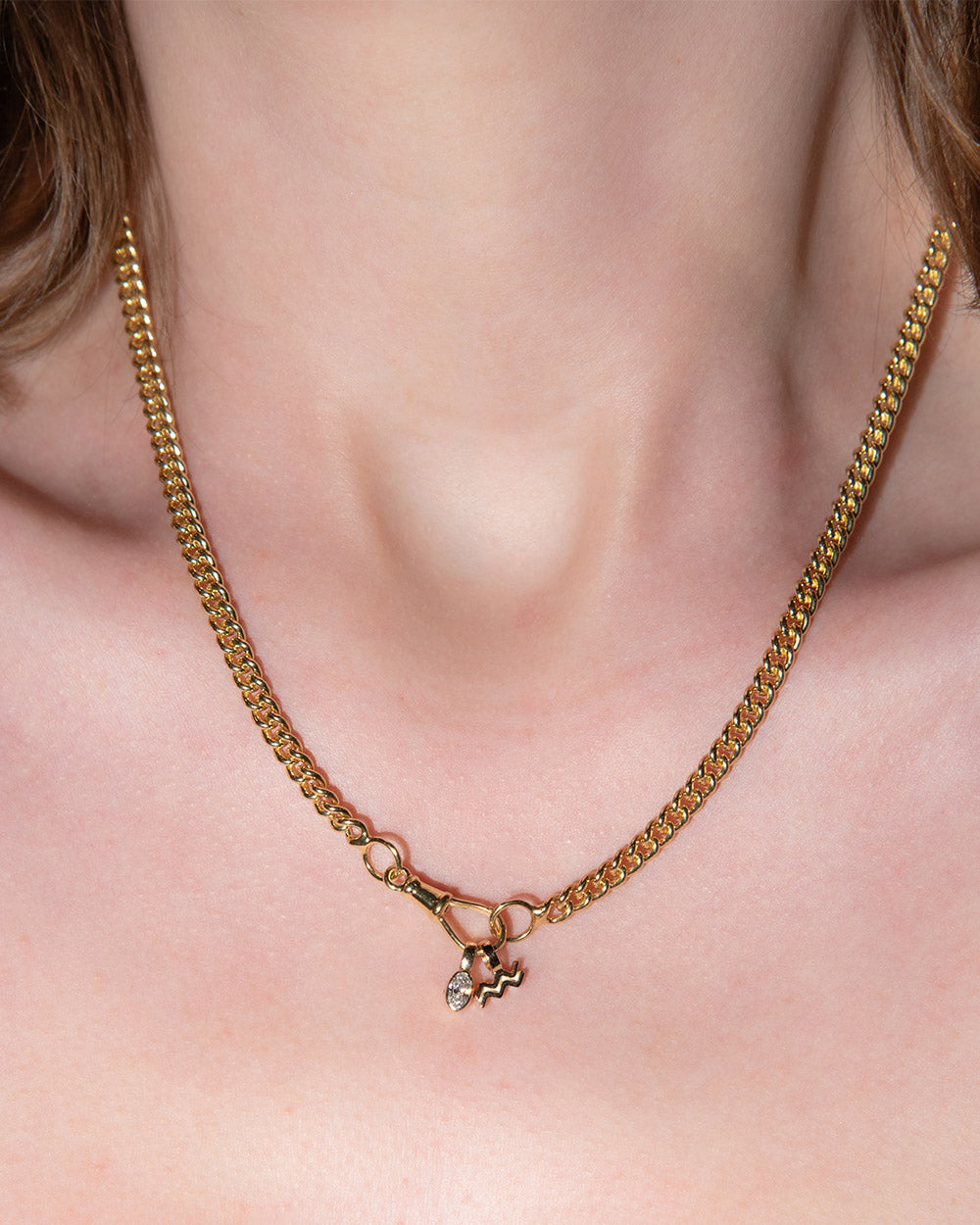Bold, but balanced: pair a statement chain with a fine diamond accent and a zodiac.