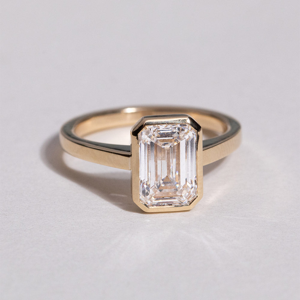 A smooth, minimal rim of metal that frames the stone - modern, secure, and designed for everyday wear.