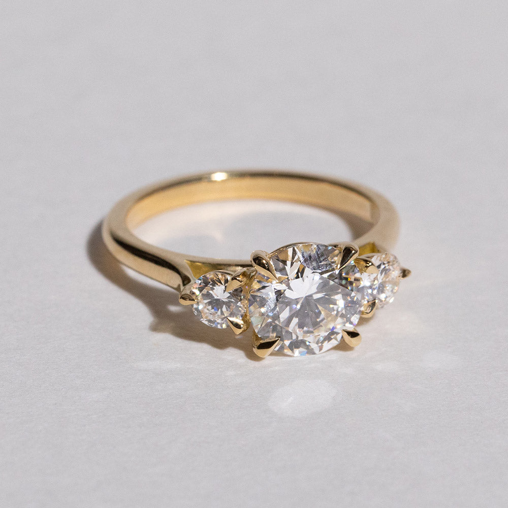 Three stones with a little more presence - often refined with modern proportions for a balanced feel.
