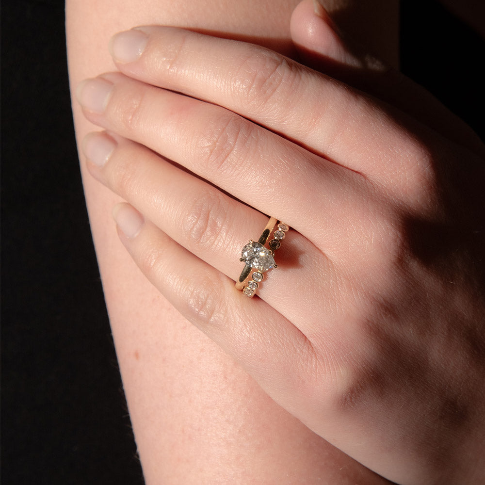 Choosing a wedding band is about balance - how it sits alongside your engagement ring, how it feels on the hand, and the finish you’ll wear every day. Explore bands designed to pair beautifully, or book an appointment and we’ll help you find the right fit.