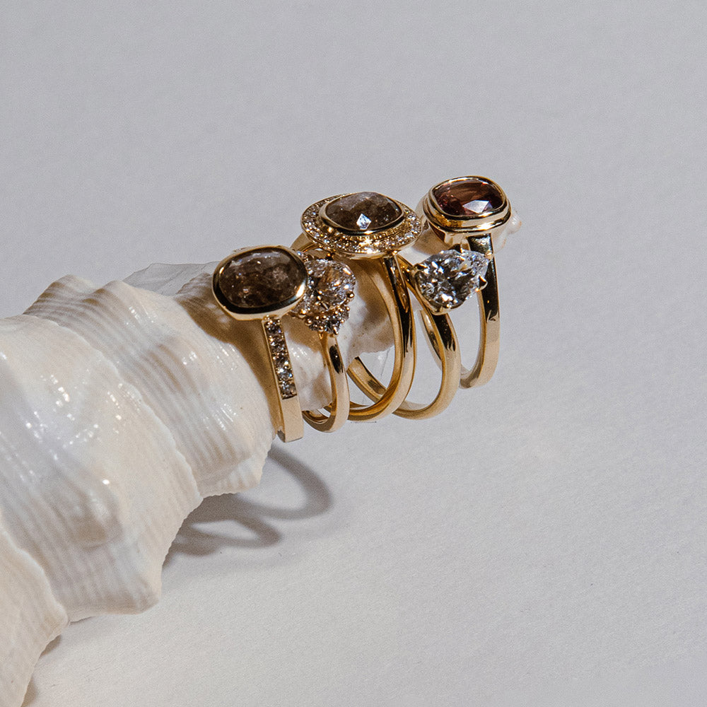 Singular rings built around individual gemstones. Each piece is made once and never repeated.
