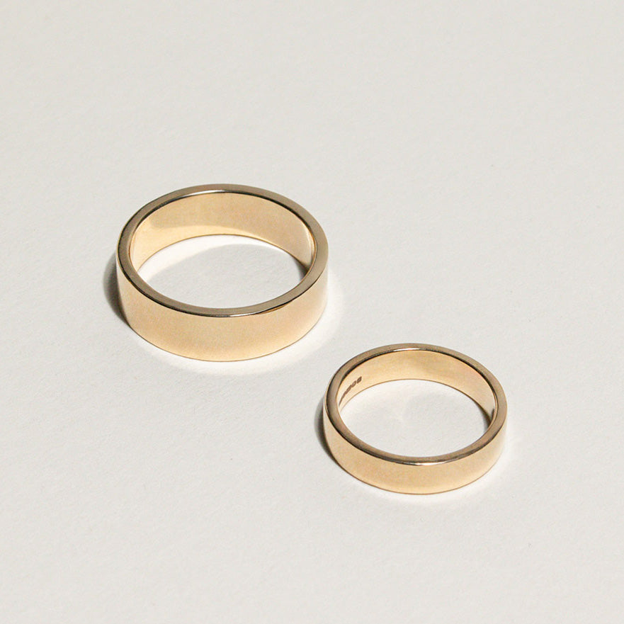 If you’re choosing as a pair, it doesn’t have to be identical. Many couples choose one shared detail - the same metal, finish, or engraving - then personalise the width and profile so each ring feels right for them personally.