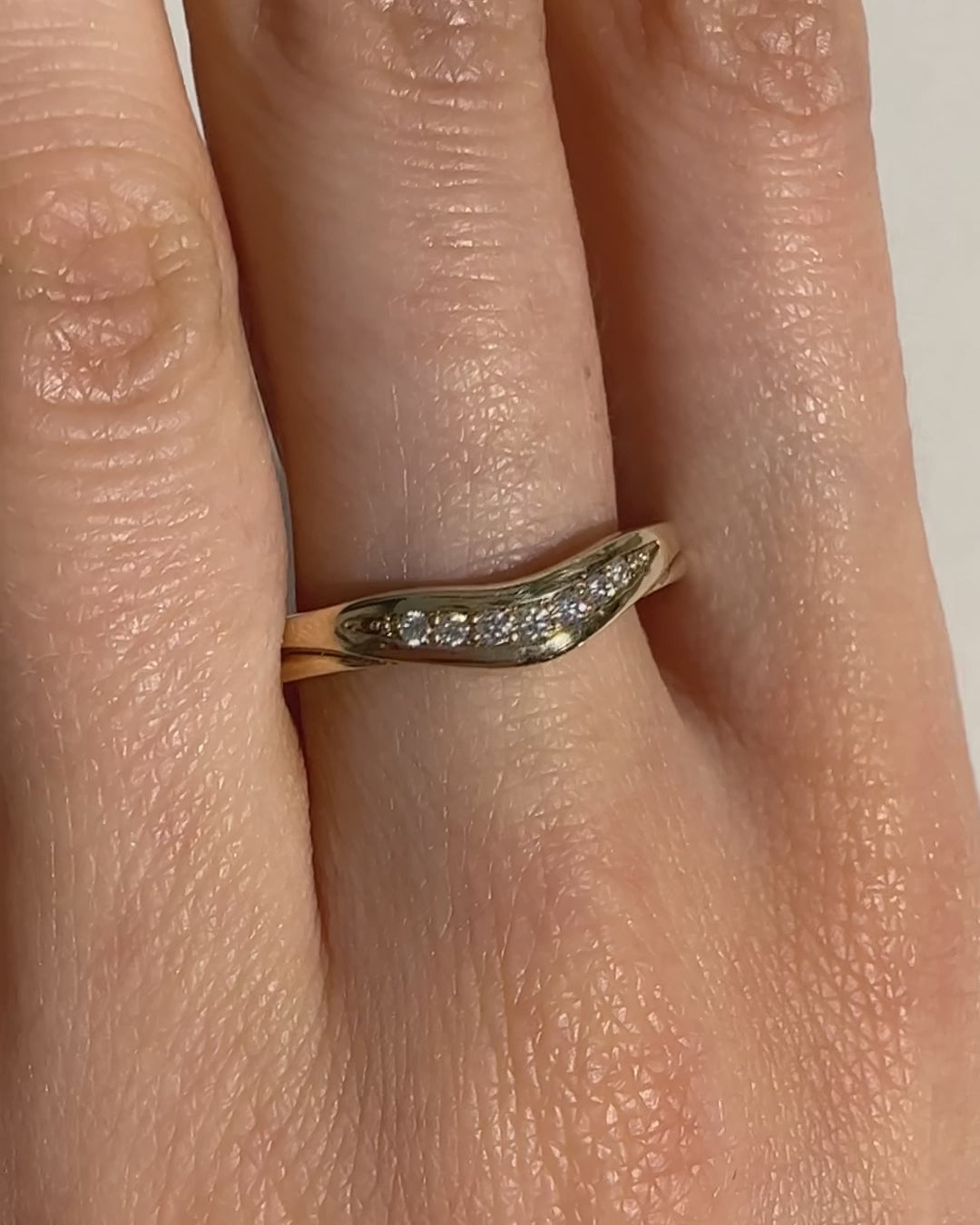 Seven sparkling diamonds are finely set in a solid gold band. Handcrafted in our London workshop with 100% recycled gold and conflict-free gemstones, this ring is a beautiful wedding band alternative or a special addition to your personal collection. Discover our Solid Gold Ring Collection.
