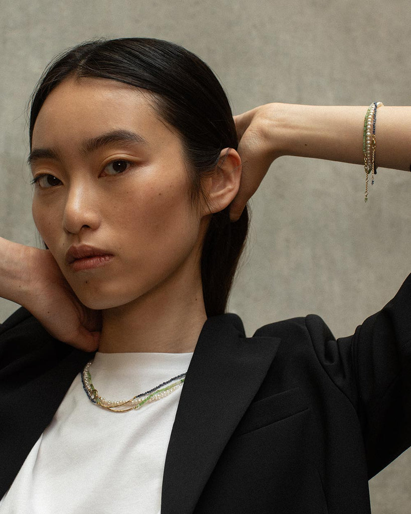 A striking matching set made to elevate any look. Handstrung with deep blue sapphires and finished with handmade solid gold bars and details, this bracelet and necklace duo adds a bold yet timeless touch. Wear them together or layer with your favourites.