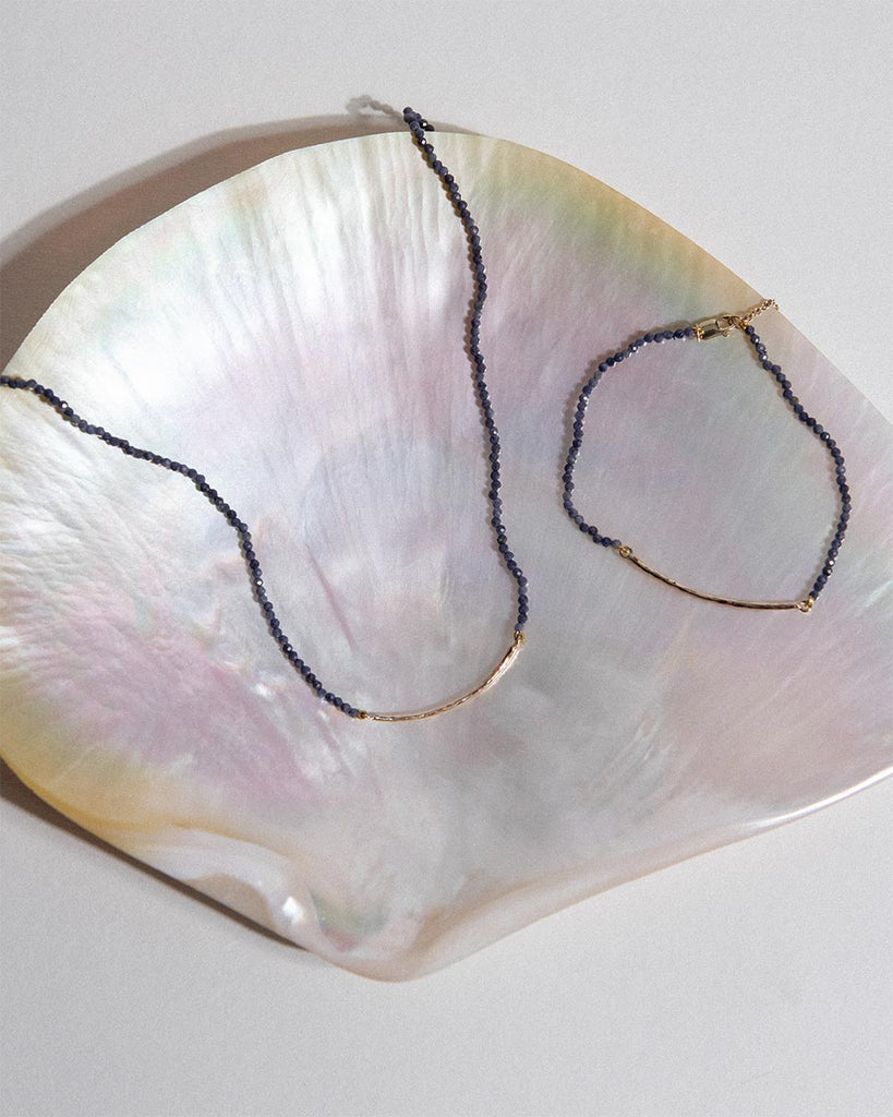 Milos Sapphire Beaded Bar Necklace and Bracelet Set