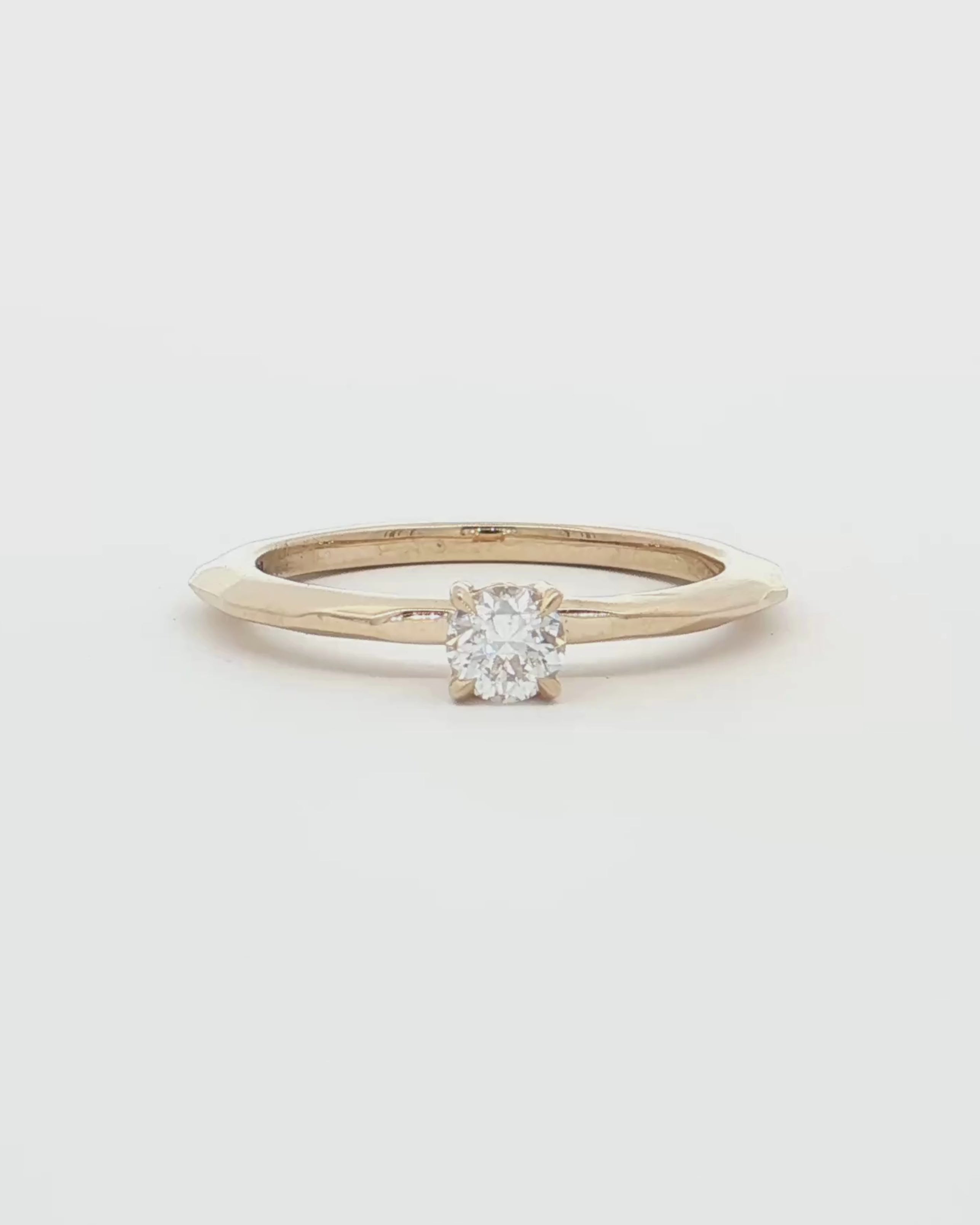A timeless engagement ring, featuring a 0.25ct lab-grown diamond set on a faceted 9ct gold band. Crafted to catch light with every angle, this ring blends modern geometry with timeless beauty.